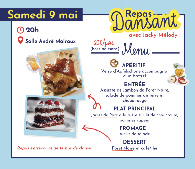 Au programme : repas traditionnel allemand, et soirée dansante avec Jacky Mélody pour danser jusqu’au bout de la nuit !