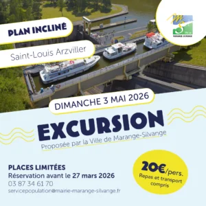 La Ville de Marange-Silvange vous propose une excursion à la journée vers l’un des ouvrages fluviaux les plus remarquables d’Europe : le Plan Incliné de Saint-Louis-Arzviller, situé en Moselle.