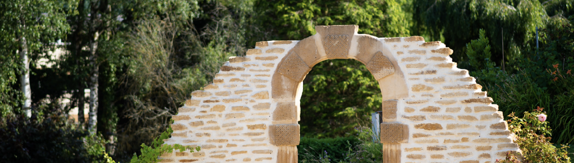 La porte des Lépreux dans ses deux dernières mises en scène : dans le jardin de la famille Hoffmann jusqu’en 2012, puis au rond-point de la rue des Roses (photos coll. CMHL et fln 2022).